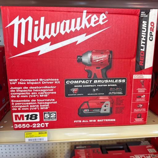Prime Tools USThe MILWAUKEE® M18™ Compact Brushless ¼” Hex Impact Driver is more compact with faster driving speeds. Measuring only 4.4" in length and 2.1" in wi...