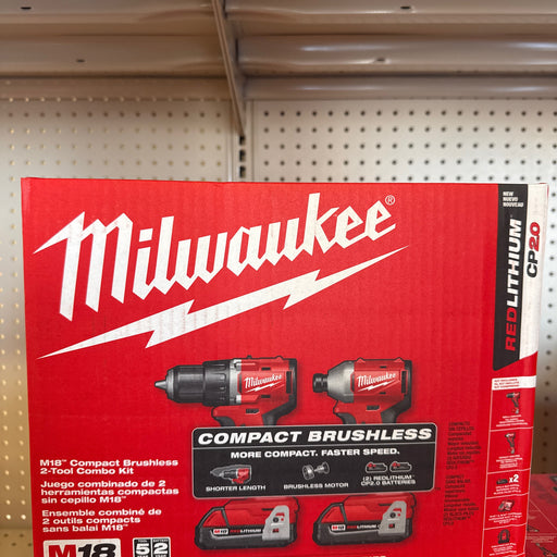 Prime Tools USThe MILWAUKEE M18 Compact Brushless 2-Tool Combo Kit is more compact with faster speeds in the application. Includes the M18 Compact Brushless ½" D...